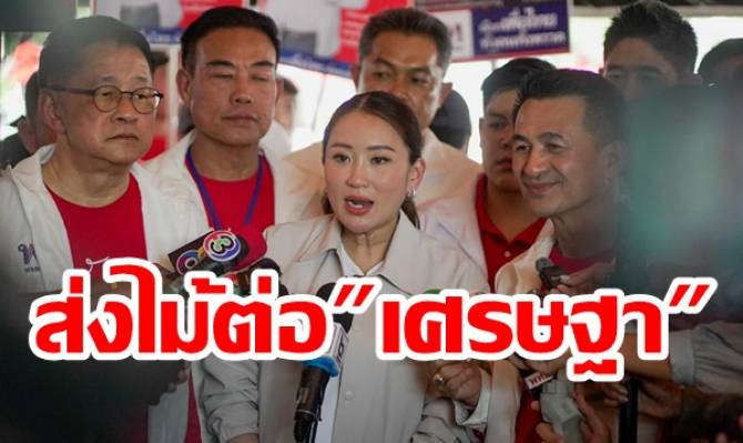 "แพทองธาร" ส่งไม้ต่อ "เศรษฐา" ยันเหมาะนายกฯช่วยงานพท.ตลอด
