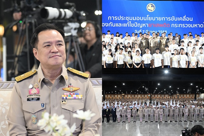 เมื่อวันที่ 7 มีนาคม 2568 น.ส.ไตรศุลี ไตรสรณกุล เลขานุการ รมว.มหาดไทย และโฆษกกระทรวงมหาดไทย เปิดเผยว่า วันนี้ (7 มี.ค. 68) เวลา 13.30 น. นายอนุทิน ชาญวีรกูล รองนายกรัฐมนตรี และ รมว.มหาดไทย เป็นประธานการประชุมมอบนโยบายการขับเคลื่อนการป้องกันและแก้ไขปัญหายาเสพติดของกระทรวงมหาดไทย โดยมี นายทรงศักดิ์ ทองศรี รมช.มหาดไทย น.ส.ซาบีดา ไทยเศรษฐ์ รมช.มหาดไทย นายอรรษิษฐ์ สัมพันธรัตน์ ปลัดกระทรวงมหาดไทย และผู้บริหารกระทรวงมหาดไทย เข้าร่วม ณ อาคารอิมแพ็ค ฟอรั่ม ฮอลล์ 4 ศูนย์แสดงสินค้าและการประชุม อิมแพ็ค เมืองทองธานี อ.ปากเกร็ด จ.นนทบุรี