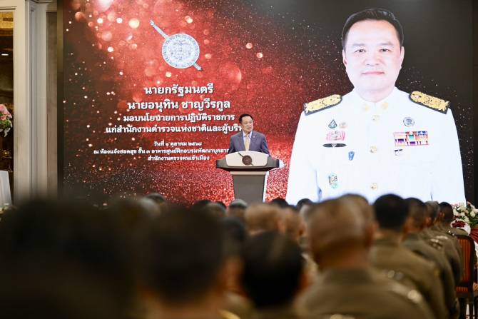 เมื่อวันที่ 1 ตุลาคม 2568 เวลา 13.30 น. ที่สำนักงานตำรวจแห่งชาติ (สตช.) นายอนุทิน ชาญวีรกูล นายกรัฐมนตรีและรัฐมนตรีว่าการกระทรวงมหาดไทย ได้เดินทางมาเป็นประธานมอบนโยบายแก่ข้าราชการตำรวจระดับผู้บังคับการขึ้นไป รวม 338 นาย โดยมี พล.ต.อ. กิตติ์รัฐ พันธุ์เพ็ชร์ ผู้บัญชาการตำรวจแห่งชาติ ให้การต้อนรับ พร้อมกองเกียรติยศ