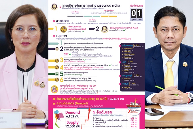 - เริ่มแล้ว! “ตรีนุช” เปิดให้แรงงานเมียนมาในพื้นที่พักพิง 4.2 หมื่นคน ออกทำงานถูกกฎหมาย แก้ปัญหาขาดแคลนแรงงานภาคธุรกิจ 1 ต.ค. 2568