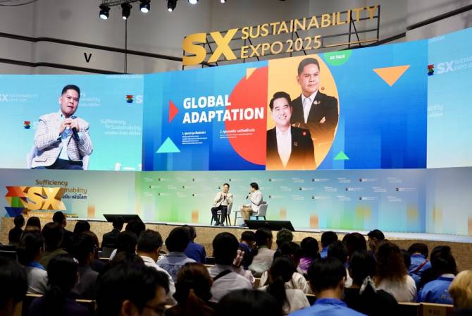 เมื่อวันที่ 4 ตุลาคม 2568 ที่ศูนย์การประชุมแห่งชาติสิริกิติ์ นายวราวุธ ศิลปอาชา หัวหน้าพรรคชาติไทยพัฒนา ในฐานะอดีตรัฐมนตรีว่าการกระทรวงการพัฒนาสังคมและความมั่นคงของมนุษย์ และอดีตรัฐมนตรีว่าการกระทรวงทรัพยากรธรรมชาติและสิ่งแวดล้อม ร่วมกิจกรรมในงาน SUSTAINABILITY EXPO 2025 บนเวทีเสวนา SX TALK หัวข้อ Global Adaptation แสดงมุมมองโลกเปลี่ยนไวแค่ไหน…เราพร้อมปรับตัวหรือยัง ในวันที่ Climate Change ไม่ใช่แค่เรื่องสิ่งแวดล้อม แต่กระทบตั้งแต่เศรษฐกิจ ชุมชน ไปจนถึงชีวิตประจำวัน ถึงเวลาเรียนรู้การ “ปรับตัว“ ที่ไม่ใช่ทางเลือก แต่คือทางรอดของทุกประเทศ รวมทั้งแนวคิดการสร้างสังคมใหม่ด้วยความเชื่อที่ว่าเราทุกคนมีศักยภาพที่มากพอ และสามารถเป็นส่วนสำคัญในการรับมือวิกฤตต่าง ๆ ได้