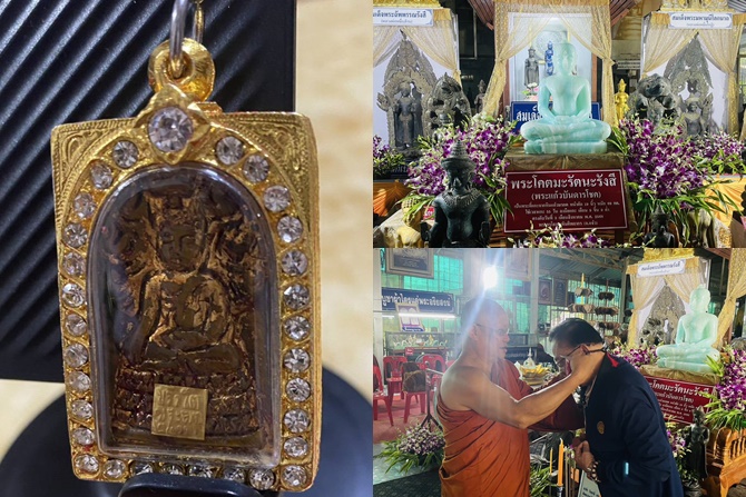 ดร.มหานิยม ยังได้กราบนมัสการ “พระแก้วบันดาลโชค” พระพุทธรูปศักดิ์สิทธิ์ที่แกะจากหินแก้วมรกต หน้าตักกว้าง 19 นิ้ว น้ำหนัก 69 กิโลกรัม ใช้เวลาในการแกะสลักนานถึง 55 วัน เริ่มลงมือตั้งแต่วันเดือน 9 ขึ้น 9 ค่ำ (ตรงกับวันที่ 3 สิงหาคม 2568) ตามดำริของพระครูโสภณขันติพลากร เพื่อให้เป็นพระประธานแห่งวัดถ้ำผาป่อง