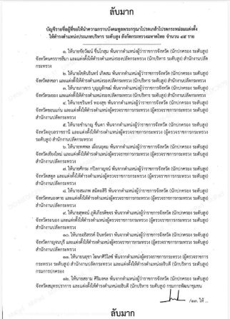 18. นายขจรเกียรติ รักพานิชมณี พ้นจากตำแหน่งอธิบดีกรมที่ดิน และแต่งตั้งให้ดำรงตำแหน่งผู้ว่าราชการจังหวัดขอนแก่น