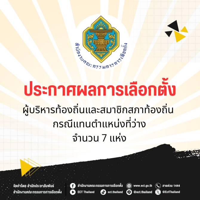 กกต.ประกาศผลการเลือกตั้งผู้บริหารท้องถิ่นและสมาชิกสภาท้องถิ่น กรณีแทนตำแหน่งที่ว่าง