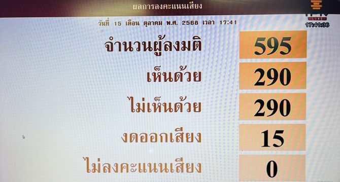 เมื่อวันที่ 15 ตุลาคม 2568 ที่รัฐสภา มีการประชุมร่วมกันของรัฐสภา พิจารณาร่างรัฐธรรมนูญแห่งราชอาณาจักรไทย (แก้ไขเพิ่มเติม) พ.ศ. .... ซึ่งมี 3 ร่างจากพรรคประชาชน พรรคภูมิใจไทย และพรรคเพื่อไทย ว่าด้วยการแก้ไขเพิ่มเติมมาตรา 256 และเพิ่มหมวด 15/1 เรื่องการจัดทำรัฐธรรมนูญฉบับใหม่ เป็นวันที่ 2 หลังจากสมาชิกอภิปรายเสร็จแล้วได้มีการลงมติด้วยการขานชื่อ ปรากฏว่า