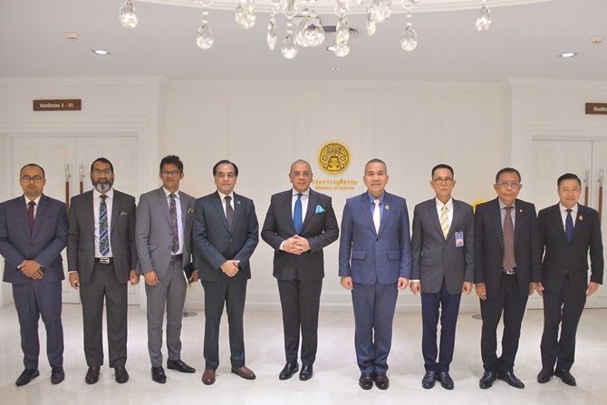 วันพุธที่ 15 ตุลาคม 2568 พลตำรวจโท รุทธพล เนาวรัตน์ รัฐมนตรีว่าการกระทรวงยุติธรรม ให้การต้อนรับ ดร. ซัยยิด เรฟาต อาห์เหม็ด (Honorable Chief Justice Dr. Syed Refaat Ahmed) ประธานศาลฎีกาบังกลาเทศ พร้อมด้วย นายไฟยาซ เมอชิด คาซี (H.E. Mr. Faiyaz Murshid Kazi) เอกอัคราชทูตบังกลาเทศประจำประเทศไทย และคณะ ในโอกาสเดินทางเยือนประเทศไทยอย่างเป็นทางการ เพื่อเข้าร่วมการประชุมระดับภูมิภาคว่าด้วยภาวะผู้นำตุลาการสำหรับผู้พิพากษาหญิงในเอเชียและแปซิฟิก (Regional Convening on Judicial Leadership for Women Judges in Asia and the Pacific) ระหว่างวันที่ 16 - 17 ตุลาคม 2568 ณ กรุงเทพมหานคร ประเทศไทย โดยมี นายศุภชัย ใจสมุทร เลขานุการรัฐมนตรีว่าการกระทรวงยุติธรรม พลตำรวจโท สรรเพชญ สุขภิมนตรี ที่ปรึกษารัฐมนตรีว่าการกระทรวงยุติธรรม นายไตรยฤทธิ์ เตมหิวงศ์ อธิบดีกรมคุ้มครองสิทธิและเสรีภาพ เจ้าหน้าที่สำนักงานรัฐมนตรี และกองการต่างประเทศ สำนักงานปลัดกระทรวงยุติธรรม ร่วมให้การต้อนรับ ณ ห้องรับรองประจำกระทรวงยุติธรรม 3 – 01 ชั้น 3 อาคารกระทรวงยุติธรรม