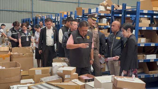 เมื่อวันที่ 16 ตุลาคม 2568 ตามที่รัฐบาลได้มอบนโยบายให้กระทรวงสาธารณสุข เร่งปราบปรามการกระทำความผิดที่ส่งผลกระทบต่อสุขภาพของประชาชนอย่างจริงจัง จึงได้มีการแต่งตั้งคณะกรรมการปราบปรามการกระทำผิดด้านกฎหมายของกระทรวงสาธารณสุข โดยแผนปฏิบัติการเร่งด่วนระยะ 4 เดือน มุ่งเน้นการออกตรวจพื้นที่ และกวาดล้างเครือข่ายผลิตภัณฑ์สุขภาพผิดกฎหมาย ล่าสุดสำนักงานคณะกรรมการอาหารและยา (อย.) สนธิกำลังร่วมกับตำรวจกองบังคับการปราบปรามการกระทำความผิดเกี่ยวกับการคุ้มครองผู้บริโภค (บก.ปคบ.) ขยายผลจากเรื่องร้องเรียนบุกเข้าตรวจค้นโกดังสินค้าในจังหวัดสมุทรปราการพบเป็นแหล่งลักลอบนำเข้าและพักสินค้าสุขภาพผิดกฎหมายจำนวนมาก ยึดของกลางกว่า 114,000 ชิ้น มูลค่ากว่า 11 ล้านบาท