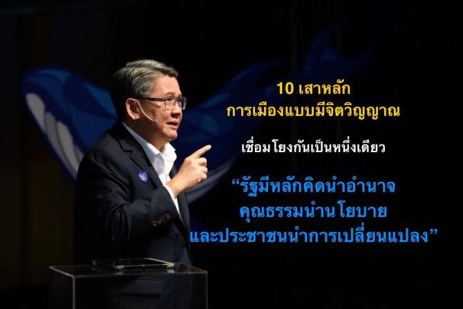 การเมืองแบบมีจิตวิญญาณ คือการเมืองที่ฟื้นคืนหัวใจของรัฐ รัฐที่มีหลักคิดนำอำนาจ มีคุณธรรมนำนโยบาย และมีอนาคตนำความกลัว เป็นรัฐที่อยู่บนหลักการจะสร้างระบบที่คนดีอยู่ได้ คนไม่ดีอยู่ยาก และประชาชนกลับมาเป็นเจ้าของประเทศอย่างแท้จริง