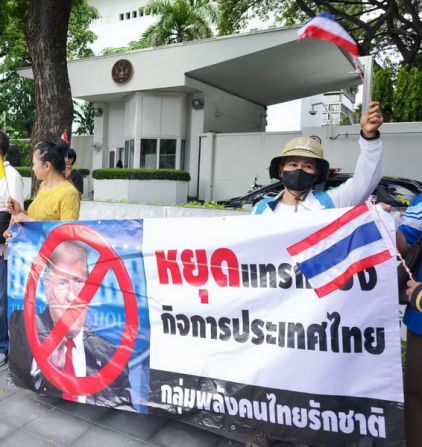 วันที่ 22 ตุลาคม 2568 กลุ่มคนไทยหัวใจรักชาติประมาณ 50 คน เดินทางไปยังหน้าสถานเอกอัคราชทูตอเมริกา ประจำประเทศไทย เพื่อยื่นหนังสือถึง ประธานาธิบดี โดนัลด์ ทรัมป์ ของสหรัฐฯ เรียกร้องให้ยุติการแทรกแซงกิจการภายในของประเทศไทย โดยอ่านจดหมายเปิดผนึกหน้าสถานทูตระบุว่า ตามที่มีท่านประธานาธิบดี เข้ามายุ่งเกี่ยวกับปัญหาความขัดแย้งระหว่างราชอาณาจักรไทยกับราชอาณาจักรกัมพูชา พวกเราคนไทยรู้สึกขอบคุณท่านประธานาธิบดีที่ห่วงใยความสมพันธ์ระหว่างราชอาณาจักรไทยกับราชอาณาจักรกัมพูชา แต่ราชอาณาจักรไทยเป็นประเทศมีอธิปไตยที่สมบูรณ์ ต้องการแก้ปัญหาความขัดแย้งของ 3 ประเทศในรูปแบบทวิภาคี ไม่ต้องการให้ประเทศที่ 3 เข้ามาแทรกแซงกิจการภายใน ราชอาณาจักรไทยกับราชอาณาจักรกัมพูชา มีพรมแดนติดกันยานับ 1,000 กม. มีปัญหาการปักปันเขตแดนมายาวนาน ซึ่งเป็นเรื่องละเอียดอ่อนที่จะต้องให้ 2 ประเทศแก้ปัญหากันเอง ซึ่งย่อมมีแนวทางในการแก้ปัญหาระหว่างกัน โดยมีคณะกรรมการในการเจรจา 3 ระดับอยู่แล้ว ตั้งแต่ระดับรัฐบาล ระดับความมั่นคง และระดับท้องถิ่น ครอบคลุมการเจรจาทุกปัญหา การที่ท่านประธานาธิบดี เข้ามายุ่งเกี่ยว ไม่เพียงไม่สามารถแก้ปัญหาได้เท่านั้น แต่อาจจะทำให้ปัญหาลุกลามบานปลายยิ่งกว่าเดิม