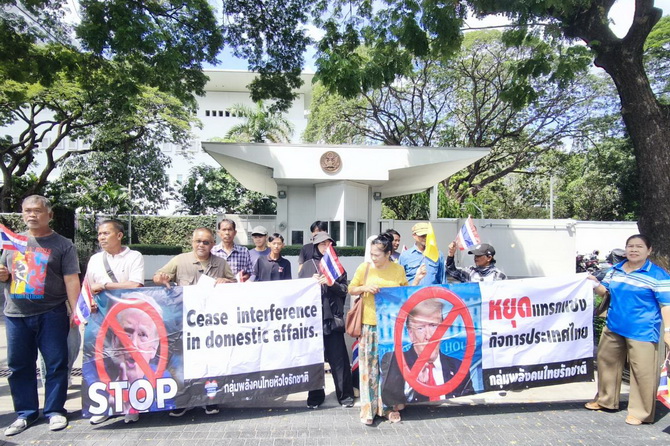 คนไทยรวมพลังบุกสถานทูตมะกันโวย “ทรัมป์” หยุดแทรกแซงประเทศไทย