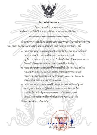 ประกาศสำนักพระราชวัง เรื่อง การถวายสักการะพระบรมศพ สมเด็จพระนางเจ้าสิริกิติ์ พระบรมราชินีนาถ พระบรมราชชนนีพันปีหลวง
