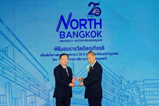 ดร.อดิศร ไชยคุปต์ รองอัยการสูงสุด รับมอบโล่เกียรติคุณ "ศิษย์เก่าดีเด่น" ด้านภาวะผู้นำและการบริหารองค์กร จาก พลอากาศเอกชลิต พุกผาสุข องคมนตรี เนื่องในโอกาสครบรอบสถาปนา 25 ปี มหาวิทยาลัยนอร์ทกรุงเทพ 31 ตุลาคม 2568