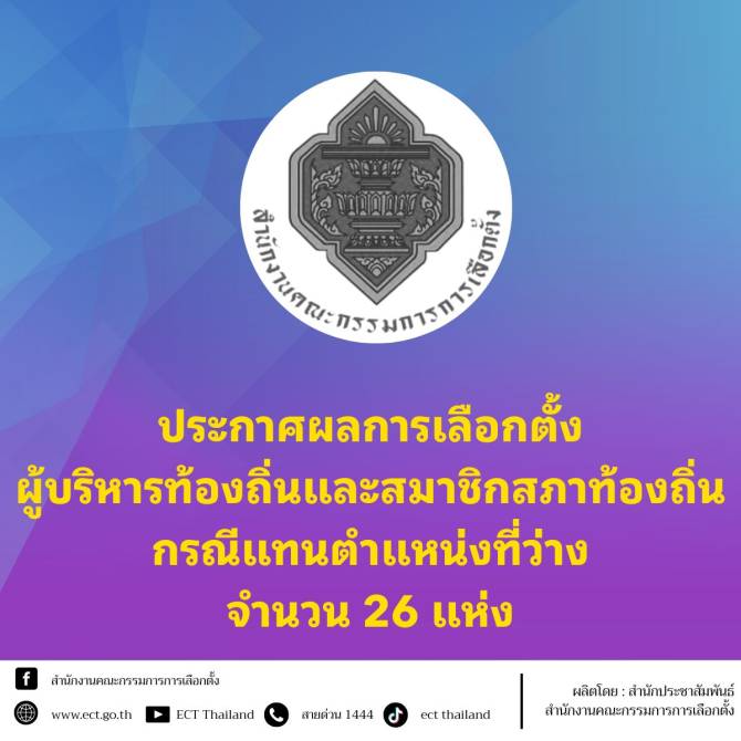 กกต.ประกาศผลการเลือกตั้งผู้บริหารท้องถิ่นและสมาชิกสภาท้องถิ่น กรณีแทนตำแหน่งที่ว่าง