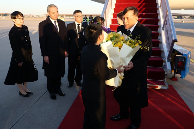 โดยมีนายหวัง อี้ (Mr. Wang Yi) สมาชิกกรมการเมือง ผู้อำนวยการสำนักงานคณะกรรมการกลางด้านกิจการต่างประเทศของพรรคคอมมิวนิสต์จีน และรัฐมนตรีว่าการกระทรวงการต่างประเทศ สาธารณรัฐประชาชนจีน พร้อมด้วยข้าราชการระดับสูง สาธารณรัฐประชาชนจีน เฝ้าทูลละอองธุลีพระบาทรับเสด็จ
