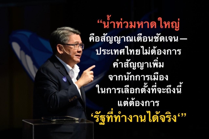 “น้ำท่วมหาดใหญ่คือสัญญาณเตือนชัดเจน — ประเทศไทยไม่ต้องการคำสัญญาเพิ่มจากนักการเมืองในการเลือกตั้งที่จะถึงนี้ แต่ต้องการ ‘รัฐที่ทำงานได้จริง’”