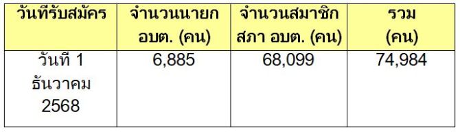 - กกต.สรุปผลการรับสมัคร ส.อบต.และนายก อบต. (วันแรก) 2 ธ.ค. 2568