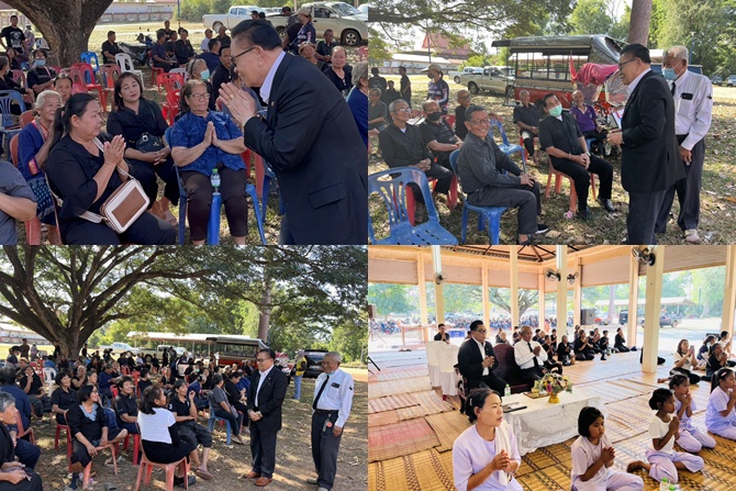 พร้อมกันนี้ได้มอบหมายให้นางนลินี เวชกามา ภรรยา พร้อมด้วยนางเครือวัลย์ ศิริสวัสดิ์ เลขานุการส่วนตัว และนางดวงจันทร์ โยวะ เป็นตัวแทนประธานงานฌาปนกิจศพและวางผ้าไตรเอกของนางวิลัย ผาจันยอ ณ เมรุวัดบ้านบึงน้อย ต.บึงทวาย อ.เต่างอย จ.สกลนคร ซึ่งวันนี้มีนายถนอม สมผล นายกเทศมนตรีตำบลงิ้วด้อน นายวิทยา หาดทวายกาญจน์ นายก อบต.บึงทวาย นายสิรภพ สมผล รองนายกเทศมนตรีตำบลงิ้วด้อน กำนัน ผู้ใหญ่บ้าน ผู้สมัครสมาชิกสภาท้องถิ่น และพี่น้องประชาชนเข้าร่วมงานครั้งนี้กันอย่างพร้อมเพรียง