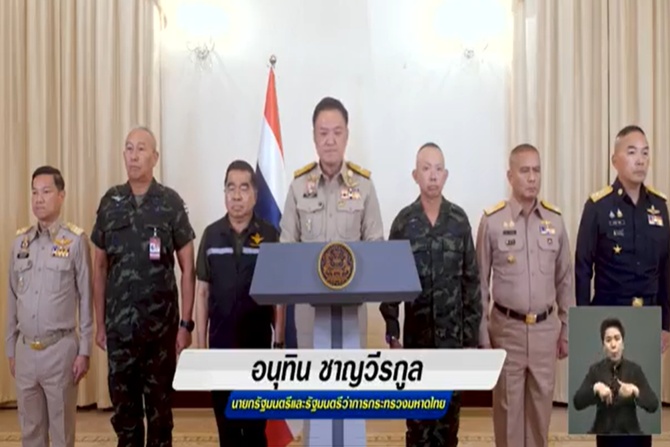 - "อนุทิน" แถลงมติ สมช.เปิดปฏิบัติการทางทหารต่อกัมพูชาตามสถานการณ์ทุกกรณีตามความจำเป็น ยืนยันทำตามหลักสันติ-มนุษยธรรม 8 ธ.ค. 2568