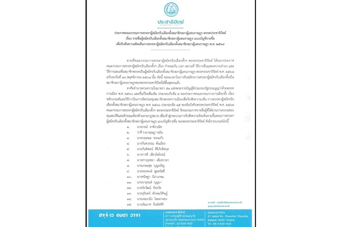 พรรคประชาธิปัตย์เปิดตัวว่าที่ผู้สมัครสส.แบบบัญชีรายชื่อครบ 100 คน