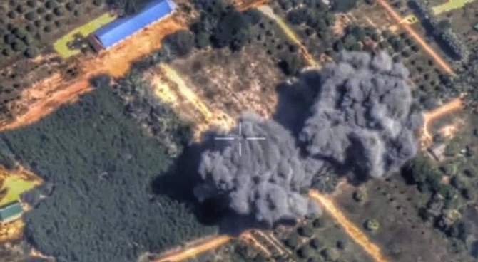 เครื่องบินF-16 ทำการทิ้งระเบิดบริเวณยอดเขาเปี๊ยะสะแบกของฐานทหารกัมพูชา ซึ่งที่แห่งนี่เป็นที่ตั้งโรงเก็บ จลก. จรวดหลายลำกล้อง BM-21