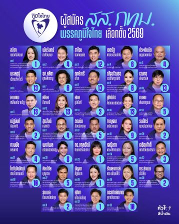 - เปิดหมายเลขผู้สมัคร สส.กทม. ภูมิใจไทย ครบ 33 เขต 27 ธ.ค. 2568