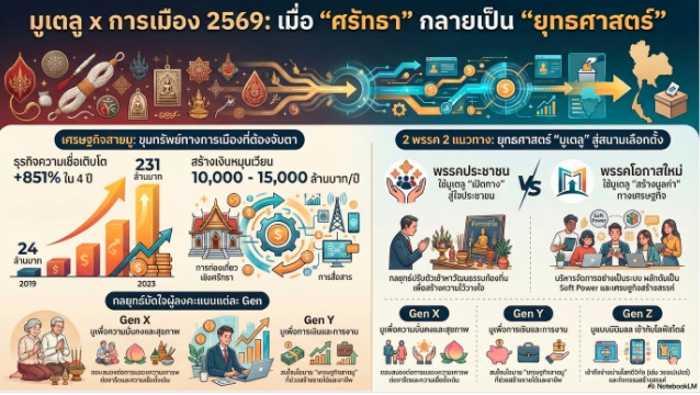 - มูเตลูผงาดเวทีเลือกตั้ง 2569 จากความศรัทธาสู่ยุทธศาสตร์หาเสียงและเศรษฐกิจสร้างสรรค์ 2 ม.ค. 2569