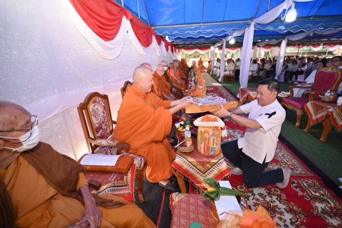 ปลัดกระทรวงมหาดไทย นำพุทธศาสนิกชนทอดผ้าป่ามหากุศลสองครูบาสร้างพระตำหนักทรงเมืองพระแม่เจ้าจามเทวีเคียงคู่กู่ช้าง จ.ลำพูน