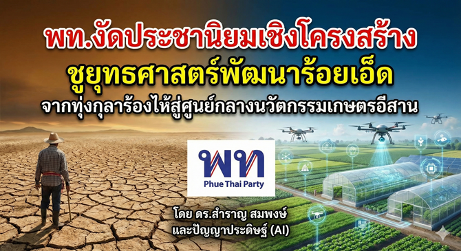 เพื่อไทยงัด "ประชานิยมเชิงโครงสร้าง" สู้ศึกเลือกตั้ง 2569 ชูยุทธศาสตร์พัฒนาร้อยเอ็ด จากทุ่งกุลาร้องไห้สู่ศูนย์กลางนวัตกรรมเกษตรอีสาน