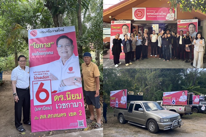 เมื่อวันที่ 5 มกราคม 2569 ดร.นิยม เวชกามา ผู้สมัครสมาชิกสภาผู้แทนราษฎร จังหวัดสกลนคร เขต 2 ในนาม พรรคโอกาสใหม่ เดินหน้าเตรียมความพร้อมการหาเสียงเลือกตั้งอย่างเข้มข้น ด้วยการจัดทำป้ายหาเสียงและรถแห่ประชาสัมพันธ์ เพื่อรองรับการเลือกตั้งทั่วไปที่จะมีขึ้นในวันที่ 8 กุมภาพันธ์ 2569