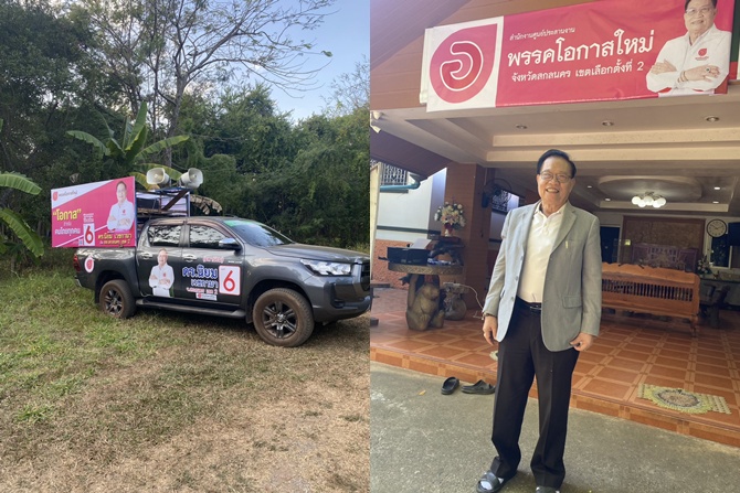 หลังจากนั้น เตรียมป้ายรถแห่และป้ายหาเสียงไปติดตั้งตามหมู่บ้านเขตชุมชนต่างๆใน สกลนคร เขต 2 ซึ่งประกอบด้วย อำเภอกุสุมาลย์ อำเภอโพนนาแก้ว อำเภอโคกศรีสุพรรณ อำเภอเต่างอย และอำเภอเมืองสกลนคร (เฉพาะตำบลเหล่าปอแดง ตำบลโคกก่อง ตำบลดงชน ตำบลม่วงลาย และตำบลโนนหอม)