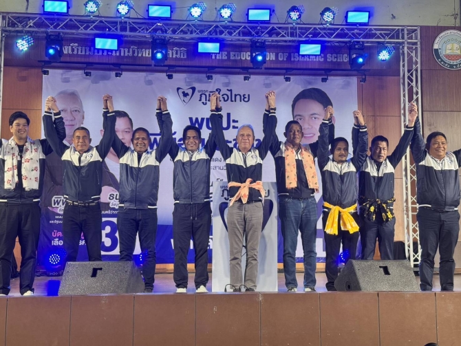 ท่ามกลางบรรยากาศคึกคักและกระแสตอบรับจากพี่น้องประชาชนที่ดีมากเกินคาด สะท้อนความเชื่อมั่นต่อพรรคภูมิใจไทยที่เพิ่มขึ้นอย่างชัดเจน พร้อมประกาศความมั่นใจว่า การเลือกตั้งปี 2569 พรรคจะได้ที่นั่งเพิ่ม และมั่นใจ “นราธิวาสที่นั่งเพิ่ม “มากกว่า 2 เขต” และตั้งเป้าหมาย “ปักธงนราธิวาสครบทั้งจังหวัด 5 เขต”