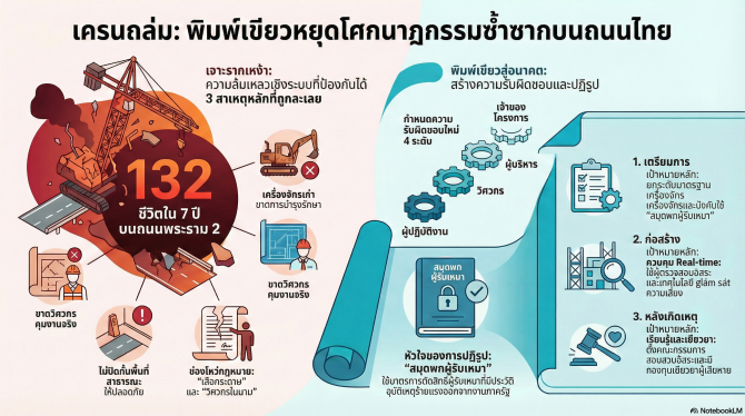 พิมพ์เขียวแก้ปัญหาเครนถล่ม ชี้ความล้มเหลวเชิงระบบ ดัน "สมุดพกผู้รับเหมา" คุมเข้มความปลอดภัยงานก่อสร้าง