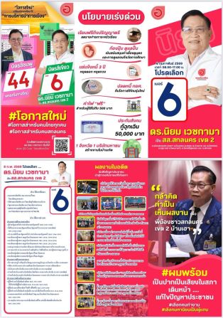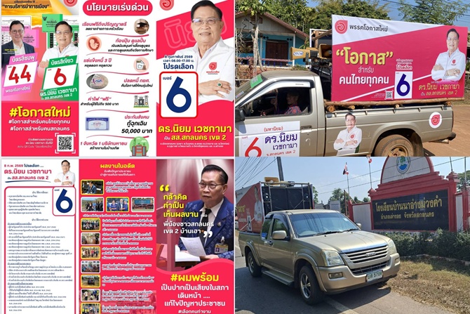 - "ดร.มหานิยม" เบอร์ 6 พรรคโอกาสใหม่ไม่ท้อ! ทีมลุยหาเสียงเขต 2 สกลนครชูนโยบายดูแลชาวบ้านตั้งแต่เกิดลดภาระค่าใช้จ่ายเพิ่มรายได้ 16 ม.ค. 2569