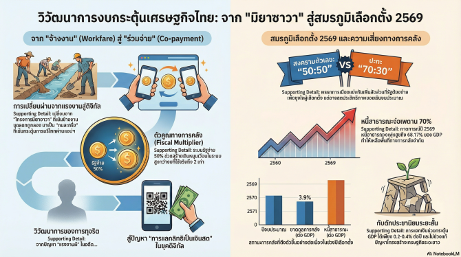 เลือกตั้ง 2569 กับสมรภูมิงบกระตุ้นเศรษฐกิจ จาก "มิยาซาวา" สู่ "คนละครึ่งพลัส" และโจทย์ใหญ่ความยั่งยืนการคลังไทย