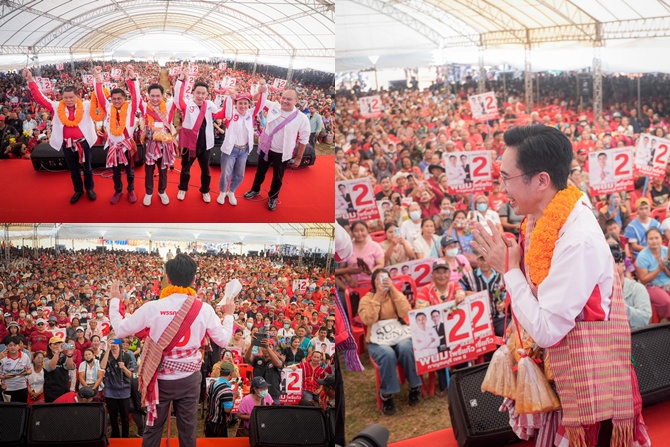 "ดร.มหานิยม" ส่งทีมงานหาเสียง ลุยพบชาวบ้านแจกแผ่นพับแนะนำตัวผู้สมัครสกลนครเขต 2 เบอร์ 6 เน้นเคาะประตูดาวกระจาย 21:23 น.- "พงศ์กวิน" แม่ทัพ กทม. เพื่อไทย ลงพื้นที่ห้วยขวาง-วังทองหลางปราศรัยหนุน "ขจรศักดิ์ ประดิษฐาน" ชูนโยบาย "คนไทยไร้จน–30 บาทรักษาทุกที่ด้วย AI" 20:56 น.