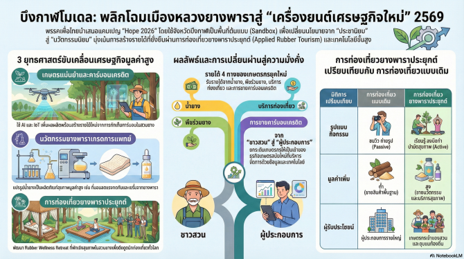 - เพื่อไทยชูบึงกาฬโมเดล ดันยางพาราผสานท่องเที่ยวสุขภาพ หวังสร้างเครื่องยนต์เศรษฐกิจใหม่ 22 ม.ค. 2569