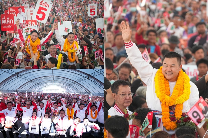 ล่าสุดวันนี้ (3 ก.พ.) ได้เดินทางมาถึง เวทีที่ 7 ณ อ.ศรีเมืองใหม่ จ.อุบลราชธานี ซึ่งเป็นการเปิดเวทีปราศรัยใหญ่เพื่อช่วยหาเสียงให้กับ นายเชิดศักดิ์ โภคกุลกานนท์ ผู้สมัคร สส.อุบลราชธานี เขต 7 (เบอร์ 5) การปราศรัยในครั้งนี้ได้รับความสนใจจากประชาชนที่มาร่วมรับฟังจนแน่นขนัดพื้นที่ และมีแกนนำหลักของพรรคมาเสริมทัพที่เวทีนี้ อาทิ นายจุลพันธ์ อมรวิวัฒน์ หัวหน้าพรรคและแคนดิเดตนายกรัฐมนตรี นายประเสริฐ จันทรรวงทอง เลขาธิการพรรค นายภูมิธรรม เวชยชัย และ นายชูศักดิ์ ศิรินิล พร้อมด้วยผู้สมัคร สส.อุบลราชธานี ในเขตพื้นที่ใกล้เคียง