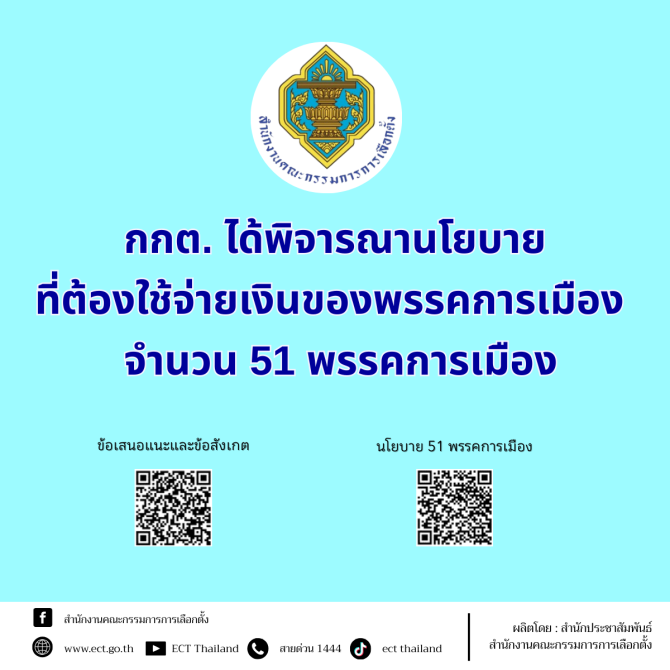 - กกต. พิจารณานโยบายที่ต้องใช้จ่ายเงินของพรรคการเมือง จำนวน 51 พรรคการเมือง 3 ก.พ. 2569
