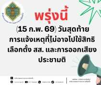 อย่าลืม! 15 ก.พ. 69 วันสุดท้ายการแจ้งเหตุที่ไม่อาจไปใช้สิทธิเลือกตั้ง สส. และการออกเสียงประชามติ 20:04 น.- กกต.ยันไม่เป็นความจริง โพสต์อ้าง กปน. สามารถถ่ายต้นขั้วเก็บไว้ แล้วหัวคะแนนตรวจได้ 100% ว่าใครกา-ไม่กา แบบไม่มีเขย่ง 20:01 น.