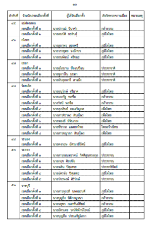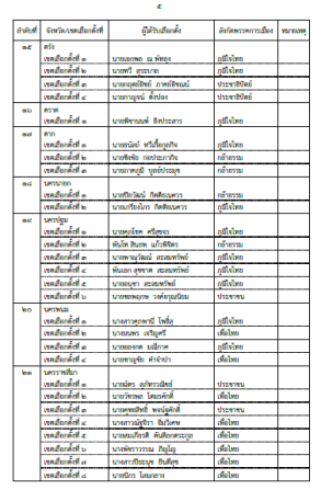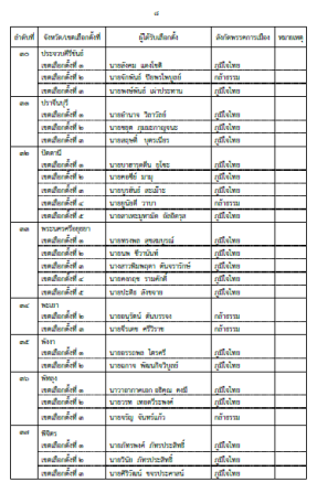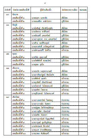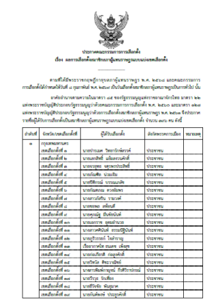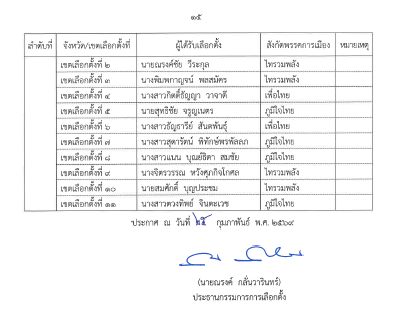 1. สำหรับการประกาศรายชื่อผู้ได้รับการเลือกตั้ง สส. แบบบัญชีรายชื่อ และ สส. แบบแบ่งเขตเลือกตั้ง (ที่ยังไม่ประกาศ) อยู่ระหว่างการพิจารณาของคณะกรรมการการเลือกตั้ง