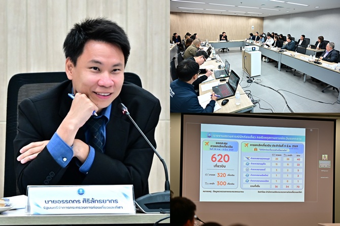ที่ประชุมได้รับรายงานภาพรวมสถานการณ์การท่องเที่ยวระหว่างประเทศ โดยในช่วงเดือนมกราคม–กุมภาพันธ์ 2569 ประเทศไทยมีนักท่องเที่ยวต่างชาติเดินทางเข้ามากว่า 6.54 ล้านคน ลดลงเล็กน้อยจากช่วงเดียวกันของปีก่อน ขณะที่รายได้จากการท่องเที่ยวสะสมกว่า 3.2 แสนล้านบาท ทั้งนี้ ตลาดที่ได้รับผลกระทบจากสถานการณ์ความไม่สงบในภูมิภาคตะวันออกกลางและเส้นทางการบินที่เกี่ยวข้องมีแนวโน้มชะลอตัว โดยเฉพาะนักท่องเที่ยวจากยุโรปและตะวันออกกลางบางส่วน