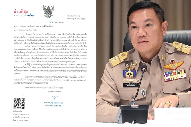 ปลัดมหาดไทยสั่งการด่วนผู้ว่าฯ 76 จังหวัด บูรณาการหน่วยงานด้านพลังงานและทุกภาคส่วน บริหารจัดการรองรับสถานการณ์ด้านพลังงานทุกพื้นที่ทั่วประเทศ