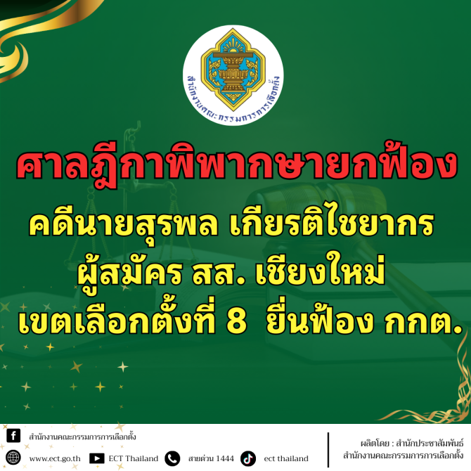 เมื่อวันที่ 10 มีนาคม 2569 ที่ศาลจังหวัดฮอด จังหวัดเชียงใหม่ ศาลฎีกาได้อ่านคำพิพากษาในคดีที่ นายสุรพล เกียรติไชยากร อดีตสมาชิกสภาผู้แทนราษฎร จังหวัดเชียงใหม่ พรรคเพื่อไทยขณะนั้น ได้ยื่นฟ้องสำนักงานคณะกรรมการการเลือกตั้งและคณะกรรมการการเลือกตั้งในข้อหาละเมิดจากการปฏิบัติหน้าที่