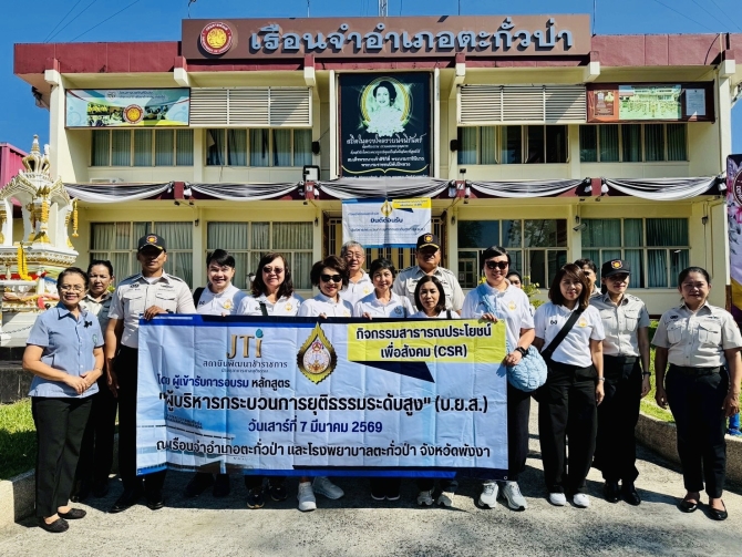 เมื่อวันเสาร์ที่ 7 มีนาคม 2569 ตัวแทนของผู้เข้ารับการอบรมหลักสูตร “ผู้บริหารกระบวนการยุติธรรมระดับสูง” หรือ บ.ย.ส. นำโดย นางพนิดา ภาณุพัฒนพงศ์ รองศาสตราจารย์นายแพทย์นริศ กิจณรงค์ และ นางลดาวัลย์ ดำเนินชาญวนิชย์ เป็นผู้แทนของ บ.ย.ส. รุ่นที่ 26 – 30 ส่งต่อความห่วงใยให้แก่ผู้ต้องขังของเรือนจำอำเภอตะกั่วป่า และผู้ป่วยที่เข้ารับการรักษาที่โรงพยาบาลตะกั่วป่า ภายใต้ชื่อ “บ.ย.ส. ขอทำดี ครั้งที่ 1” โดยนำทีมแพทย์ผู้เชี่ยวชาญเข้าตรวจรักษาดวงตา บริการวัดและตัดแว่นสายตาโดยร้านแว่นท๊อปเจริญ เลี้ยงอาหารกลางวัน และมอบของใช้จำเป็นให้แก่ผู้ต้องขัง จำนวน 668 คน เพื่อให้ผู้ต้องขังได้มีโอกาสป้องกันและรักษาดวงตา ตัดแว่นสายตา ให้สามารถมองเห็นได้ชัดเจน ได้รับของใช้ที่จำเป็นต่อการดำรงชีวิตประจำวัน อันเป็นการส่งเสริมคุณภาพชีวิตที่ดีให้แก่ผู้ต้องขัง ซึ่งนับเป็นครั้งแรกของเรือนจำอำเภอตะกั่วป่า