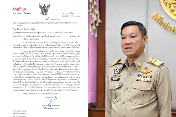 - ปลัด มท. ขานรับข้อสั่งการ "อนุทิน" สั่งด่วนผู้ว่าฯ ทั่วประเทศประสานผู้การตำรวจจังหวัด ผ่อนผันรถขนส่งน้ำมันวิ่งตลอด 24 ชม. 18 มี.ค. 2569