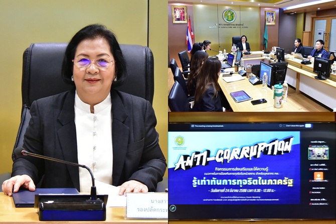 เมื่อวันที่ 24 มีนาคม 2569 นางสาวทัศนีย์ เมืองแก้ว รองปลัดกระทรวงเกษตรและสหกรณ์ เป็นประธานเปิดกิจกรรมการส่งเสริมและให้ความรู้แนวทางการป้องกันการทุจริตในหน่วยงาน สำหรับบุคลากรกระทรวงเกษตรและสหกรณ์ ภายใต้หัวข้อ “รู้เท่าทันการทุจริตในภาครัฐ” ประจำปีงบประมาณ พ.ศ. 2569 ณ ห้องประชุม 134 กระทรวงเกษตรและสหกรณ์ โดยมีบุคลากรของกระทรวงเกษตรและสหกรณ์ ทั้งส่วนกลาง ส่วนภูมิภาค และสำนักงานที่ปรึกษาการเกษตรต่างประเทศเข้าร่วม จำนวน 1,131 คน ผ่านระบบการประชุมออนไลน์ (Zoom Meeting) และผ่าน Facebook Live : ศูนย์ปฏิบัติการต่อต้านการทุจริต กระทรวงเกษตรเเละสหกรณ์ โดยกิจกรรมดังกล่าวมีวัตถุประสงค์เพื่อเสริมสร้างความรู้ความเข้าใจเกี่ยวกับกฎหมาย ระเบียบ หลักเกณฑ์ และแนวปฏิบัติที่เกี่ยวข้องกับการป้องกันการทุจริต การขับเคลื่อนนโยบาย No Gift Policy ซึ่งเป็นการส่งเสริมให้บุคลากรปฏิบัติหน้าที่ด้วยความซื่อสัตย์สุจริต โปร่งใส และตรวจสอบได้ตามหลักธรรมาภิบาล นอกจากนี้ยังเป็นการสร้างเครือข่ายในการเฝ้าระวังและป้องกันการทุจริต รวมถึงเพื่อสนับสนุนการยกระดับมาตรฐานคุณธรรมและความโปร่งใสในการปฏิบัติงาน