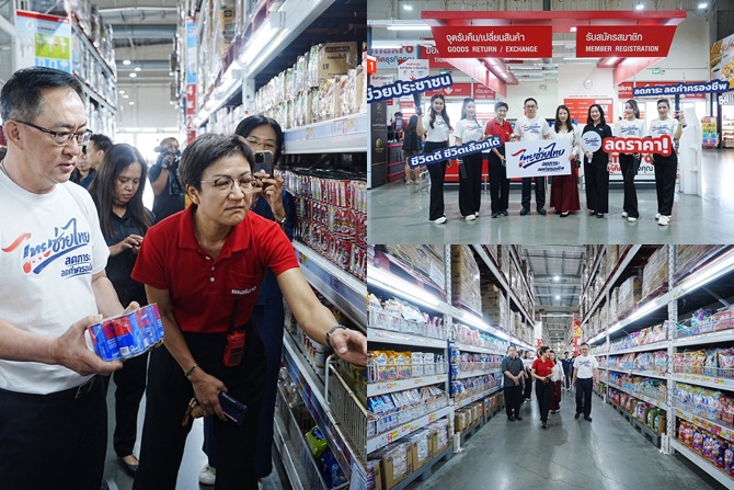 อธิบดีพูนพงษ์ฯ กล่าวต่อว่า วันนี้ (วันจันทร์ที่ 30 มีนาคม 2569) ได้ลงพื้นที่ 4 ห้างโมเดิร์นเทรด ได้แก่ *ห้างแม็คโคร สาขานครอินทร์ *ห้างโลตัส สาขานครอินทร์ *ท็อป ซูเปอร์มาร์เก็ต สาขาเซ็นทรัล เวสเกต และ *GO Wholesale สาขารังสิต เพื่อตรวจความพร้อมของร้านค้าก่อนเริ่มโครงการฯ ในวันที่ 1 เมษายน ที่กำลังจะถึงนี้ โดย 4 ห้างดังกล่าวมีประชาชนเข้ามาจับจ่ายใช้สอยซื้อสินค้าอุปโภค-บริโภคจำนวนมาก มีการจัดโปรโมชันสินค้าราคาพิเศษมาอย่างต่อเนื่อง และมีสินค้า House Brand เป็นของตัวเอง เมื่อเข้าร่วมโครงการไทยช่วยไทยฯ กับกระทรวงพาณิชย์ จึงสามารถลดราคาสินค้าได้ในราคาที่พิเศษมากยิ่งขึ้น ซึ่งช่วยลดภาระค่าครองชีพแก่ประชาชนได้เพิ่มมากขึ้นด้วยเช่นกัน