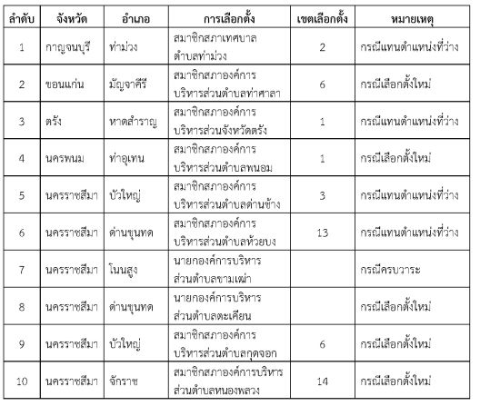 ทั้งนี้ สามารถติดตามร่วมสังเกตการณ์การเลือกตั้งสมาชิกสภาท้องถิ่นหรือผู้บริหารท้องถิ่นข้างต้น หรือสอบถามรายละเอียดเพิ่มเติมได้ที่สำนักงานคณะกรรมการการเลือกตั้ง ประจำจังหวัดที่มีการเลือกตั้งและติดตามข้อมูลข่าวสารได้ทาง www.ect.go.th หรือสอบถามรายละเอียดเพิ่มเติมได้ที่บริการสายด่วน 1444