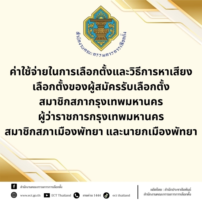 กกต.กำหนดค่าใช้จ่ายในการเลือกตั้งและวิธีการหาเสียงเลือกตั้งของผู้สมัครรับเลือกตั้ง สก. ผู้ว่าฯกทม. สมาชิกสภาเมืองพัทยา และนายกเมืองพัทยา