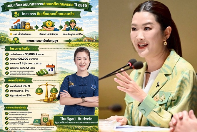 เมื่อวันที่ 16 เมษายน 2569 นางสาว ปิยะรัฐชย์ ติยะไพรัช รัฐมนตรีช่วยว่าการกระทรวงเกษตรและสหกรณ์ เปิดเผยผ่านเฟสบุ๊ก ส่วนตัว ว่า จากมติ ครม. ที่ได้เห็นชอบมาตรการบรรเทาผลกระทบสำหรับเกษตรกร โครงการสินเชื่อดอกเบี้ยคนละครึ่งเพื่อลดต้นทุนการผลิต และการปรับปรุงวงเงินโครงการและวงเงินการขอรับชดเชยจากรัฐบาลของโครงการ สินเชื่อไทยยั่งยืน ของ ธ.ก.ส. จากสถานการณ์การสู้รบในภูมิภาคตะวันออกกลางส่งผลให้ราคาน้ำมันในตลาดโลกผันผวนและอยู่ในระดับสูง กระทบต่อต้นทุนพลังงาน การขนส่ง และต้นทุนการผลิตปุ๋ยเคมี ทำให้ราคาปุ๋ยทางการเกษตรและปัจจัยทางการผลิตปรับตัวสูงขึ้นอย่างมีนัยสำคัญ เป็นผลให้ภาคการเกษตรโดยเฉพาะเกษตรกรรายย่อยต้องแบกรับภาระต้นทุนที่เพิ่มขึ้น